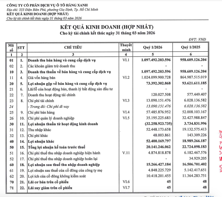 CTCP Dịch vụ Ô tô Hàng Xanh (Haxaco, mã ck: HAX) vừa công bố kết quả kinh doanh hợp nhất quý I/2026 với con số đáng chú ý.