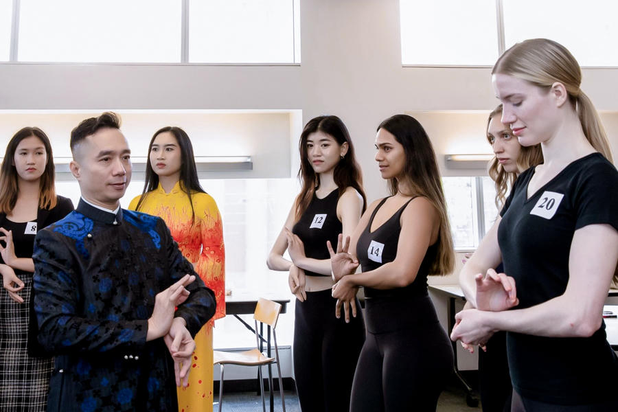 Dàn siêu mẫu quốc tế với tâm thế háo hức được thử sức với trang phục áo dài Việt Nam tại buổi casting model của NTK Đỗ Trịnh Hoài Nam cho sự kiện kỷ niệm 10 năm ngày Áo Dài Việt Nam tại San Jose, California USA.