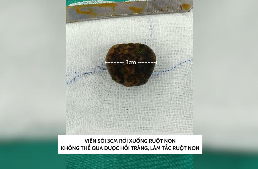Đây là trường hợp vô cùng hiếm gặp, tại Việt Nam mới chỉ ghi nhận số ít ca tương tự. Bệnh nhân nhập viện có biểu hiện là tắc ruột, nhưng nguyên nhân do túi mật viêm mãn tính gây thủng tá tràng khiến viên sỏi 3cm rơi xuống ruột non.