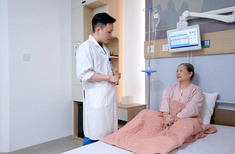 Theo dõi sau mổ, bệnh nhân hồi phục tốt, có thể đi lại, ăn uống bình thường: “Cơ thể tôi cải thiện rất nhiều, hoàn toàn không nôn nữa, bụng nhẹ nhàng, cảm thấy rất yên tâm là bệnh của mình đang tiến triển tốt” - bệnh nhân P.M.H chia sẻ sau 4 ngày can thiệp.