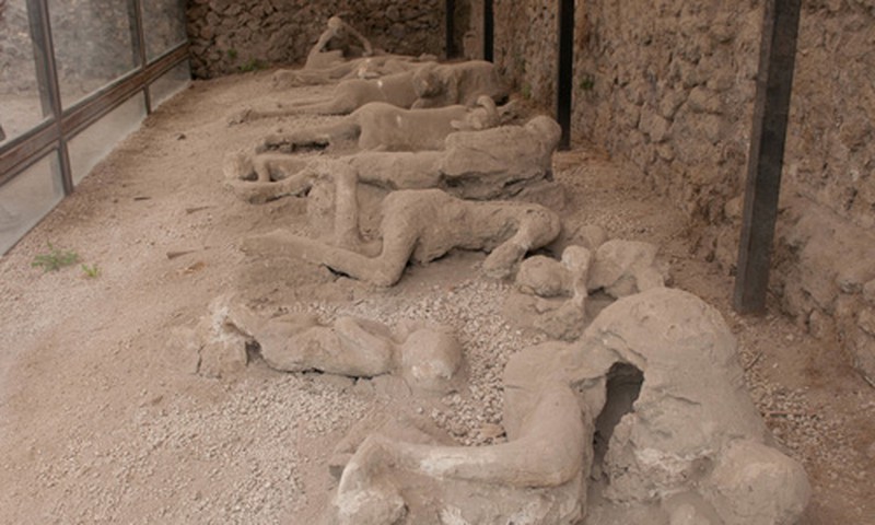 Theo dấu tích khai quật các nhà khảo cổ đã tìm được khoảng hơn 1.000 thi thể nạn nhân đã bị chôn vùi trong trận trào nham thạch. Hầu hết các thi thể đều tìm được dưới dạng bị thạch cao bao phủ toàn bộ, cộng với tư thế co quắp và nét mặt kinh hãi vẫn còn hiện nguyên.