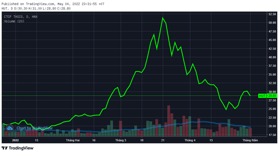 Sau tròn 1 tháng đổ đèo từ đỉnh, HUT rơi xuống dưới 25.000 đồng/cổ phiếu và gần như đánh mất toàn bộ thành quả tăng giá trước đó. Cổ phiếu này sau đó đã hồi nhẹ lên vùng 30.000 đồng/cổ phiếu nhưng lại đang có dấu hiệu quay đầu tiếp tục dò đáy.
