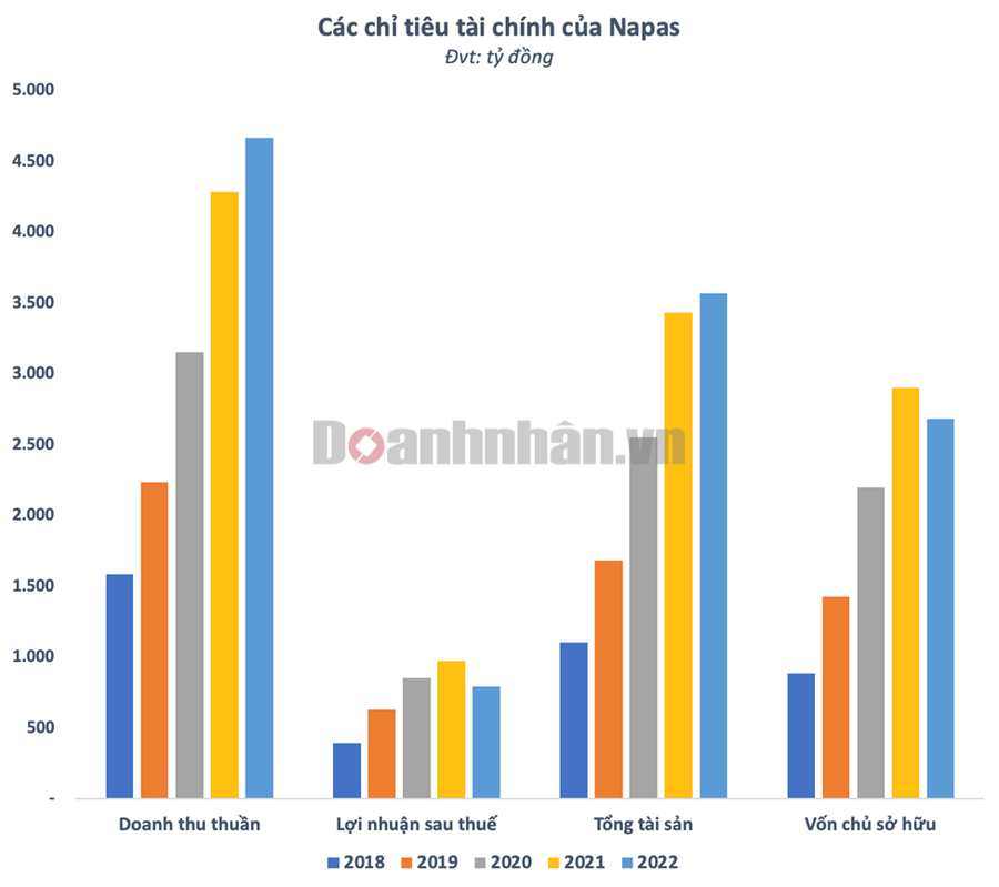 Độc quyền thời gian dài trong thị trường chuyển mạch tài chính, doanh thu của Napas không ngừng tăng trưởng qua từng năm. Năm 2022 vừa qua, doanh nghiệp này ghi nhận doanh thu gần 4.700 tỷ đồng, tăng 9% so với năm trước và là mức kỷ lục kể từ khi hoạt động. Ước tính bình quân mỗi ngày Napas tạo ra gần 13 tỷ đồng doanh thu.