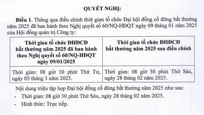 CSV sẽ điều chỉnh thời gian tổ chức ĐHĐCĐ bất thường từ ngày 5/3/2025 sang ngày 28/2/2025, lúc 8h30 sáng.