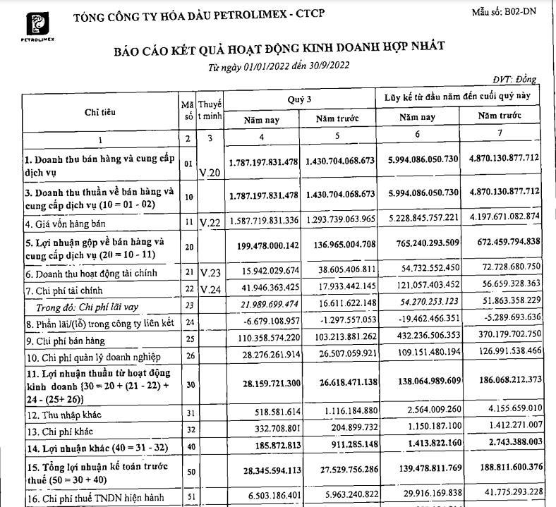 Về kết quả kinh doanh, trong quý III/2022, PLC ghi nhận doanh thu thuần hơn 1.787 tỷ đồng, tăng 25% so với cùng kỳ. Giá vốn hàng hóa và chi phí tài chính tăng cao khiến lợi nhuận sau thuế của PLC chỉ tăng 1% so với cùng kỳ, đạt hơn 21,8 tỷ đồng.