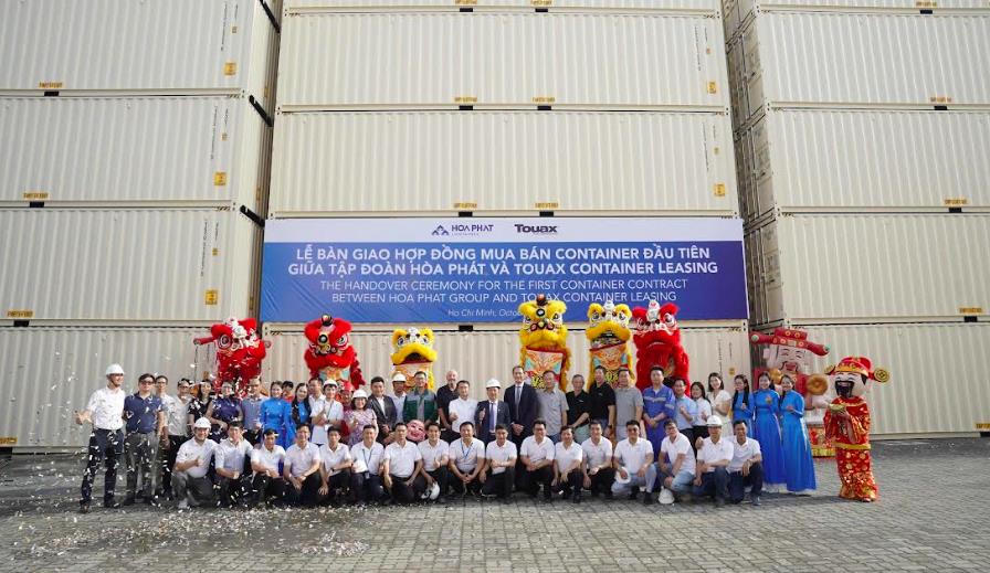 Ngày 1/10, Hòa Phát đã bàn giao đơn hàng container đầu tiên cho Công ty Touax Container Leasing Pte Ltd - một trong những doanh nghiệp cho thuê container hàng đầu thế giới với hơn 40 năm kinh nghiệm. Lô sản phẩm được sản xuất theo những yêu cầu kỹ thuật riêng biệt của Touax.