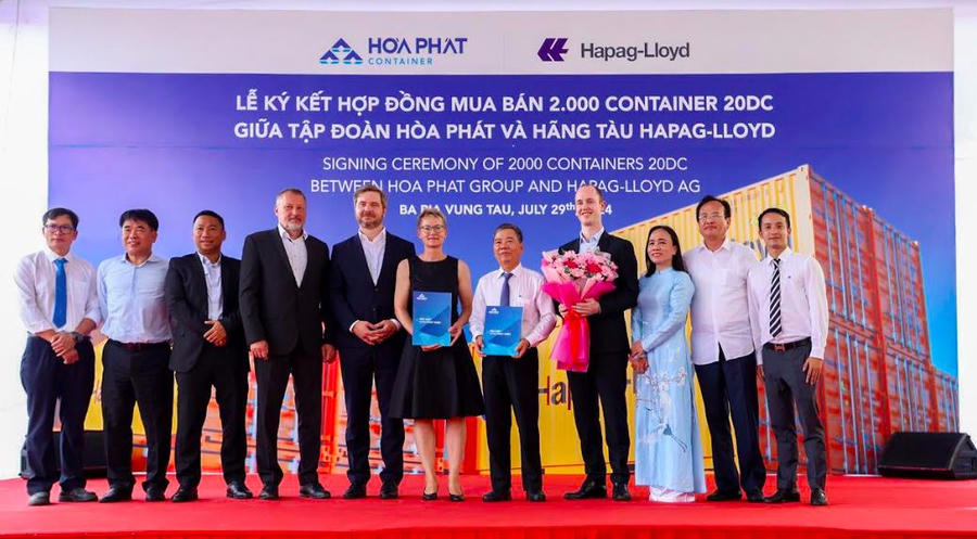 Ngày 29/7, Hòa Phát ký hợp đồng cung cấp 2.000 vỏ container 20DC cho Hapag-Lloyd, công ty vận tải container lớn nhất nước Đức và thuộc top 5 công ty vận tải container thế giới.