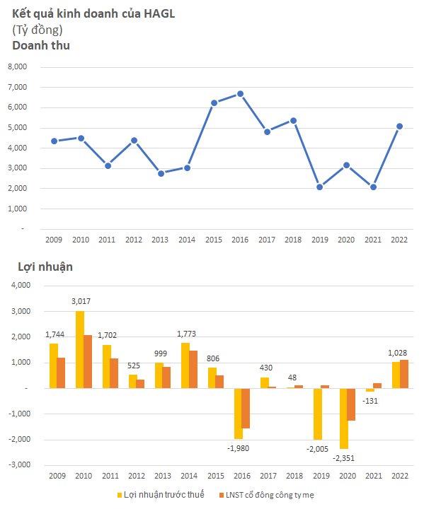 2022 vẫn là năm HAGL tăng trưởng vượt bậc và chính thức lấy lại mốc lợi nhuận ngàn tỷ sau nhiều năm đánh mất.