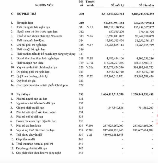 Tổng nợ phải trả tăng cao, nhưng tổng vay và nợ thuê tài chính ngắn, dài hạn lại giảm nhẹ 8% so với hồi đầu năm, ghi nhận tại hơn 1.270 tỷ đồng. Phần lớn khoản vay đến từ khoản vay dài hạn tại Vietcombank chi nhánh Hải Phòng hơn 712 tỷ đồng.
