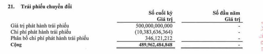 Cụ thể, HAH ghi nhận giá trị trái phiếu chuyển đổi vừa phát hành thành công vào tháng 2/2024. Giá trị trái phiếu phát hành là 500 tỷ đồng, sau khi trừ 10,3 tỷ đồng chi phí phát hành, đồng thời phân bổ một phần chi phí phát hành trái phiếu khoảng 346,1 triệu đồng, giá trị trái phiếu tại thời điểm 31/03/2024 là 489,9 tỷ đồng.