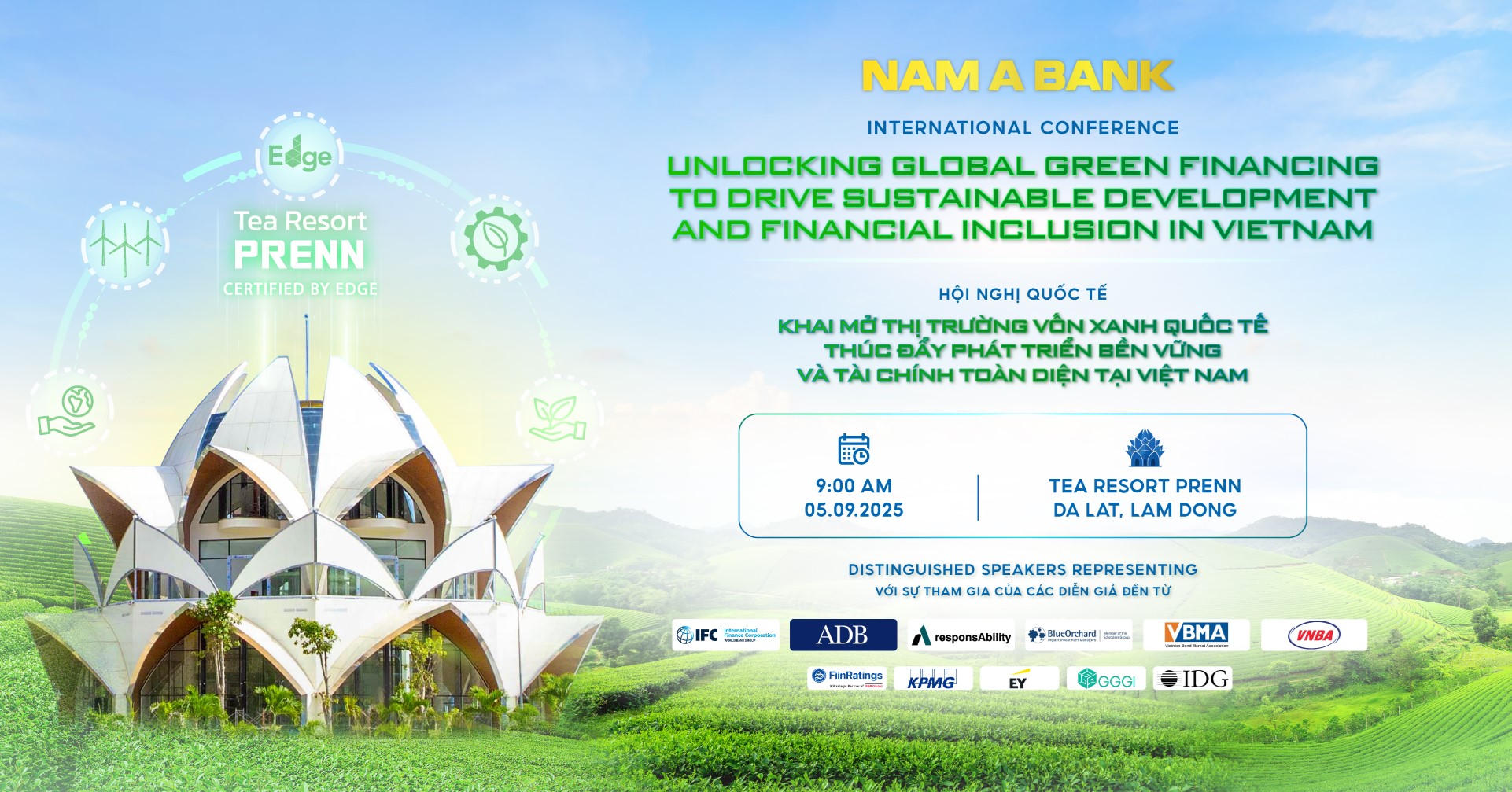 Hội nghị được tổ chức tại Tea Resort Prenn, Đà Lạt - khu nghỉ dưỡng giữa rừng thông nguyên sinh và đạt chứng chỉ công trình xanh theo tiêu chuẩn Hoa Kỳ - EGDE. Đây là địa điểm hội tụ tinh thần phát triển bền vững và đổi mới, không gian lý tưởng để thảo luận về các xu hướng tài chính xanh và tài chính toàn diện.