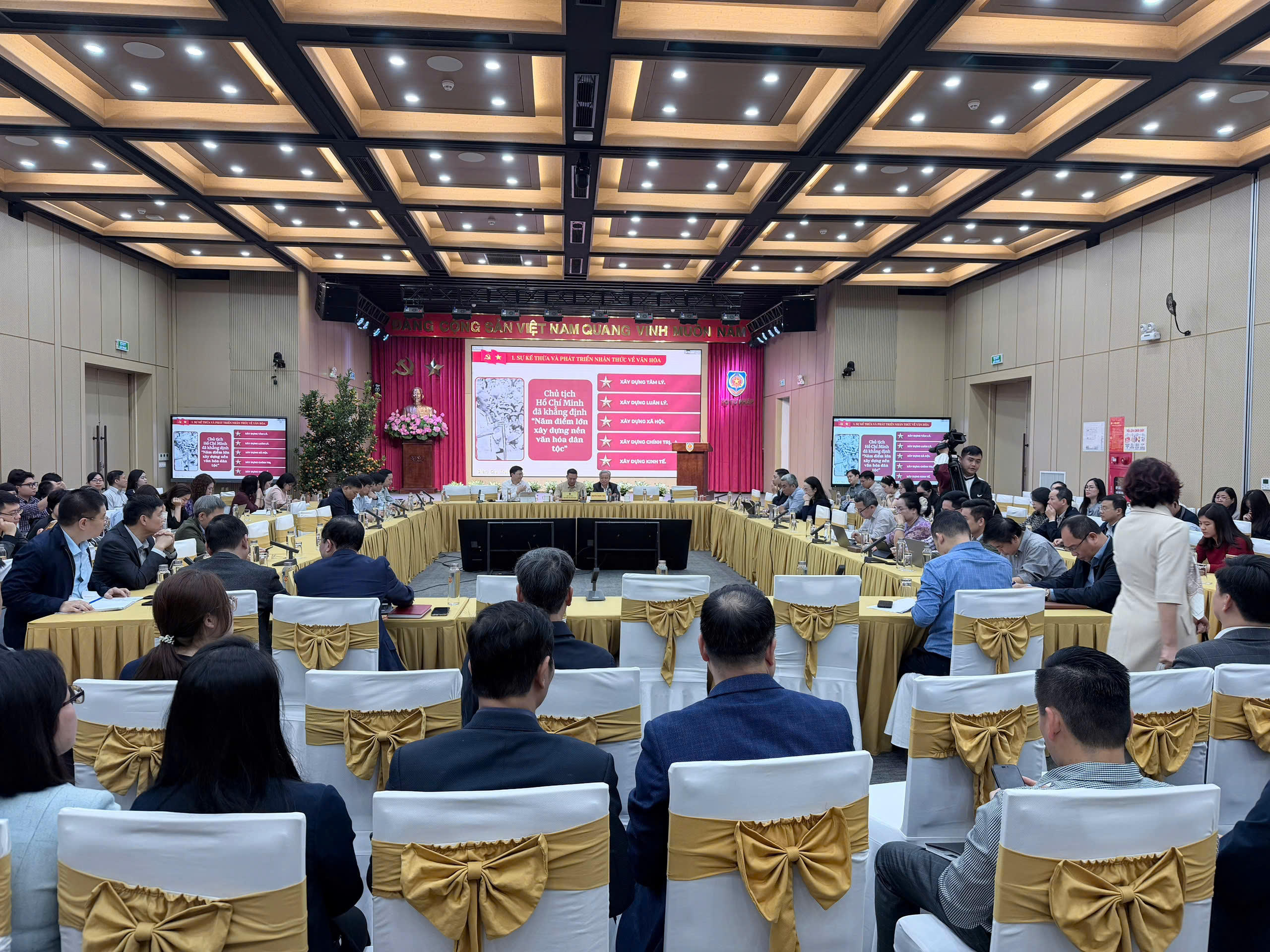 Theo chương trình, tại Hội nghị, các đại biểu nghe Ủy viên Bộ Chính trị, Bí thư Trung ương Đảng, Trưởng ban Tuyên giáo và Dân vận Trung ương Trịnh Văn Quyết thông tin chuyên đề “Nội dung trọng tâm, cốt lõi của Nghị quyết số 80-NQ/TW ngày 7/1/2026 của Bộ Chính trị về phát triển văn hóa Việt Nam”; Ủy viên Bộ Chính trị, Bí thư Trung ương Đảng, Trưởng ban Chính sách, chiến lược Trung ương Nguyễn Thanh Nghị thông tin chuyên đề “Nội dung trọng tâm, cốt lõi của Nghị quyết số 79-NQ/TW ngày 6/1/2026 của Bộ Chính trị về phát triển kinh tế Nhà nước”; Phó Thủ tướng Thường trực Chính phủ Nguyễn Hòa Bình thông tin chuyên đề “Chương trình hành động thực hiện Nghị quyết số 79-NQ/TW và Nghị quyết số 80-NQ/TW của Bộ Chính trị”.
