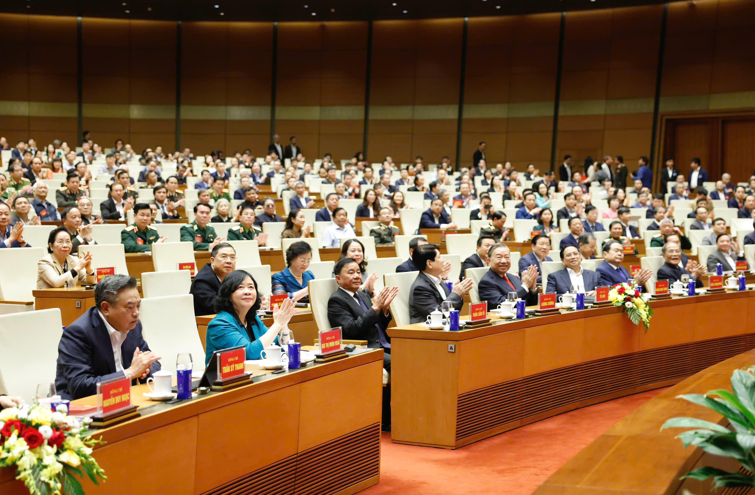 Cùng dự Hội nghị có Ủy viên Bộ Chính trị khóa XIII, Chủ tịch nước Lương Cường; nguyên Ủy viên Bộ Chính trị, nguyên Chủ tịch nước Trương Tấn Sang (dự tại điểm cầu Tây Ninh); Ủy viên Bộ Chính trị khóa XIII, Thủ tướng Chính phủ Phạm Minh Chính; Ủy viên Bộ Chính trị, Chủ tịch Quốc hội Trần Thanh Mẫn; nguyên Ủy viên Bộ Chính trị, nguyên Chủ tịch Quốc hội Nguyễn Sinh Hùng; Ủy viên Bộ Chính trị, Thường trực Ban Bí thư Trần Cẩm Tú.