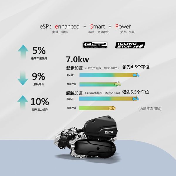 Với công suất tối đa 7,0 kW và mô-men xoắn cực đại 10,0 Nm, kết hợp trọng lượng chỉ 100 kg, chiếc xe mang lại khả năng tăng tốc tốt và dễ điều khiển trong môi trường đô thị đông đúc.