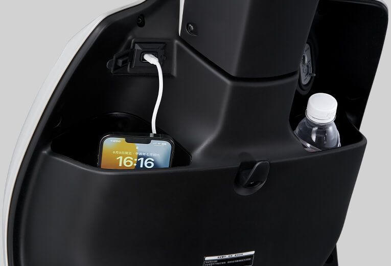 Chiếc xe cũng được chú trọng tính thực dụng, khi có ngăn chứa đồ trước lớn tích hợp cổng sạc Type C, giúp người dùng dễ dàng sạc điện thoại di động và các thiết bị điện tử cá nhân khi di chuyển. Cốp dưới yên có thể chứa được một mũ bảo hiểm 3/4, đủ dùng cho những chuyến đi trong thành phố.