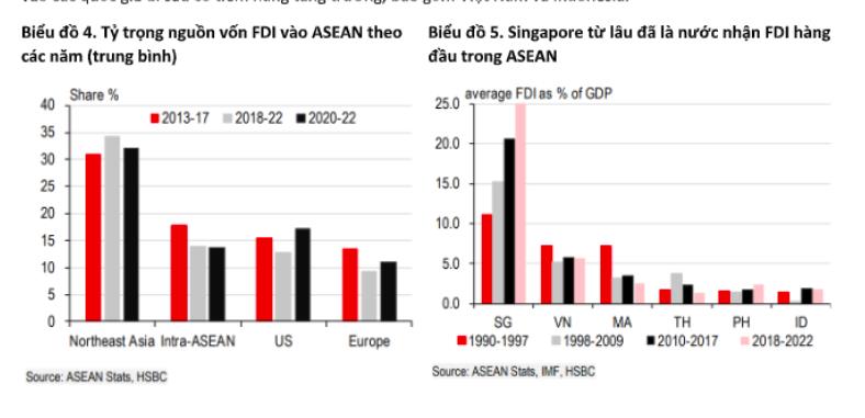 "Bất chấp suy thoái thương mại ngắn hạn, sự gia tăng vốn FDI một cách nhất quán là rất quan trọng để khu vực này nâng cao chuỗi giá trị và củng cố tầm quan trọng của ASEAN trong thương mại toàn cầu”, HSBC nhận định.