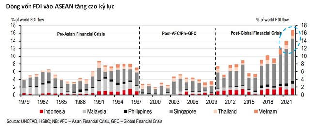 HSBC: ASEAN thu hút kỷ lục gần 17% dòng vốn FDI toàn cầu trong năm 2022