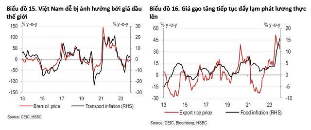 HSBC cho rằng, một nguyên do là Việt Nam đặc biệt dễ bị ảnh hưởng bởi những biến động trên thị trường hàng hóa thế giới. Trong khi lạm phát vận tải đã ổn định trong những tháng gần đây, lạm phát “nhà ở và vật liệu xây dựng” bao gồm lạm phát điện, đã chứng kiến giá cả tăng cao, khả năng còn tăng thêm nữa.