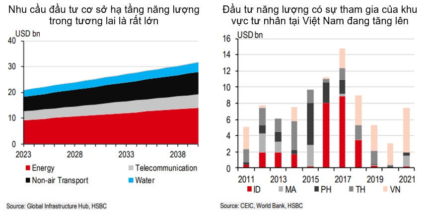 Theo ước tính của Trung tâm cơ sở hạ tầng Toàn cầu (Global Infrastructure Hub), Việt Nam cần trung bình ít nhất 25 tỷ USD/năm cho chi tiêu cơ sở hạ tầng trong 20 năm tới; trong số các ngành, năng lượng chiếm gần 45%.