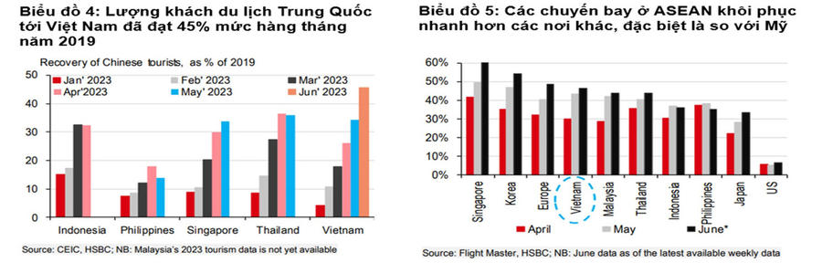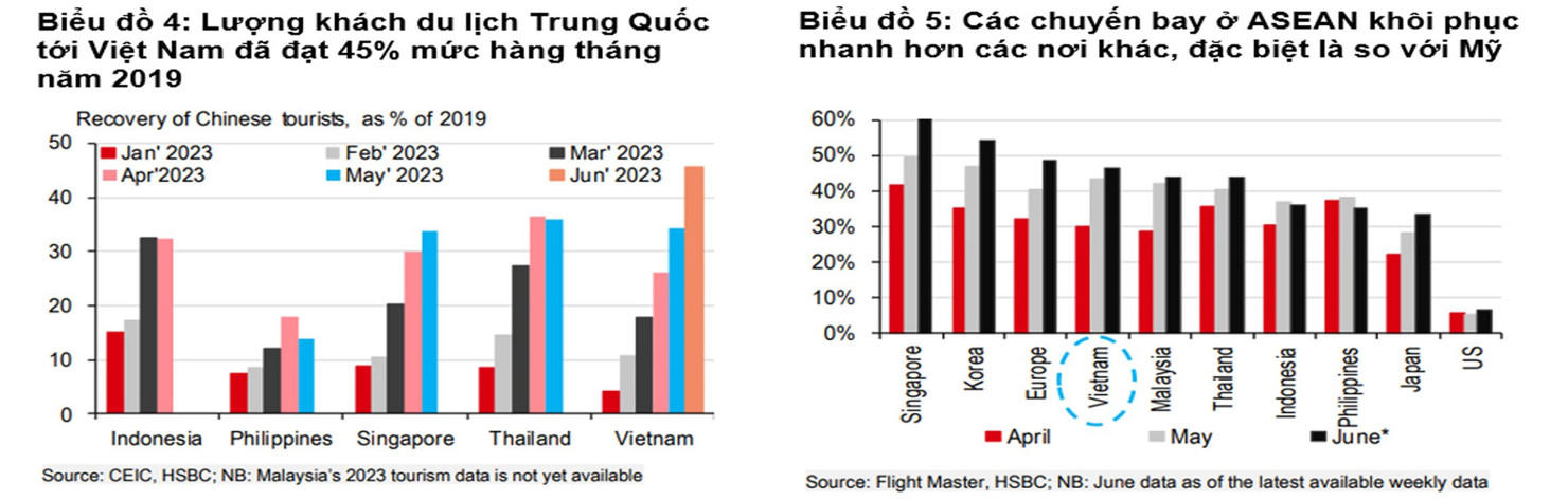 Điểm sáng là sự phục hồi trong lĩnh vực du lịch, một phần nhờ vào nỗ lực tăng tần suất chuyến bay và nới lỏng thị thực. “Xét mọi yếu tố, chúng tôi đã cắt giảm dự báo tăng trưởng năm 2023 xuống 5%; từ mức 5,2% trước đó”, chuyên gia tại HSBC nhận định.