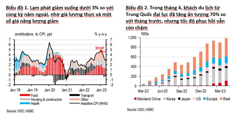 Theo HSBC, dù tăng trưởng có chậm lại, nhưng lạm phát đã tốt hơn, giúp các nhà hoạch định chính sách "dễ thở" hơn. Lạm phát toàn phần giảm 0,3% so với tháng trước, giúp lạm phát cùng kỳ năm dưới mức 3%, thấp hơn nhiều so với trần lạm phát 4,5% của Ngân hàng Nhà nước.
