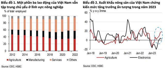 Tại Báo cáo Vietnam at a glance - Xuất khẩu nông sản vững vàng "giữ thành", HSBC nhận định, Việt Nam từ lâu được ca ngợi là một điển hình về sự phát triển khi chuyển dịch từ nền kinh tế dựa vào nông nghiệp để trở thành ngôi sao đang lên trong chuỗi cung ứng sản xuất toàn cầu.