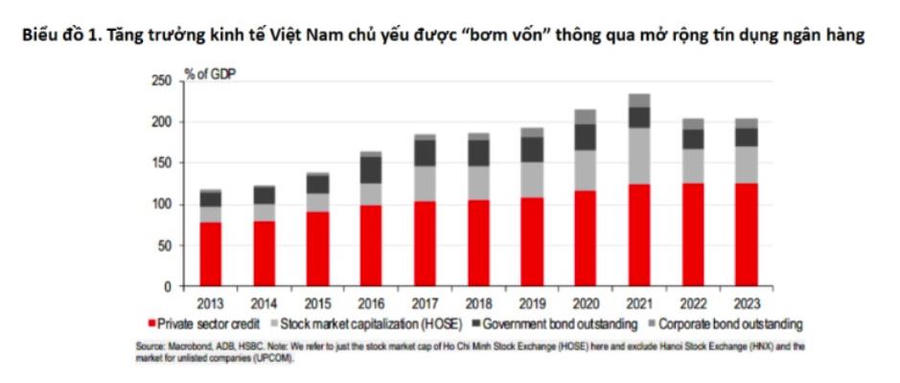 Theo HSBC, điều này đặc biệt có ý nghĩa với Việt Nam, một quốc gia đi sau so với các láng giềng ASEAN xét về mức độ phát triển thị trường chứng khoán.Mặt khác, các chuyên gia HSBC cũng nhìn nhận, tín dụng ngân hàng đã tăng đáng kể so với quy mô nền kinh tế, cho thấy, đây vẫn là yếu tố chính hỗ trợ xu hướng tăng trưởng cao của Việt Nam trong những năm qua.