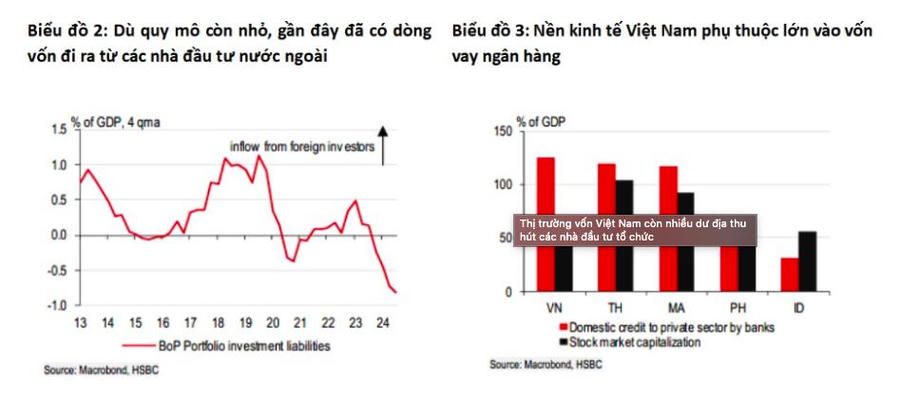 Để tăng trưởng kinh tế tránh phụ thuộc quá nhiều vào tín dụng ngân hàng, HSBC cho rằng, những diễn biến chính sách nhằm cải thiện thị trường vốn không chỉ giúp Việt Nam bắt kịp các thị trường khác mà còn nhằm đa dạng hóa và mở rộng các kênh huy động vốn để tạo sức bền tài chính.