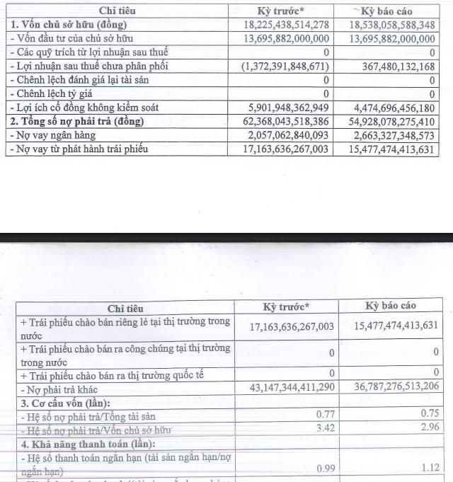 Trong số này, hầu hết nợ phải trả khác của Công ty, theo báo cáo đây là khoản ứng trước và đặt cọc của khách hàng và đối tác với giá trị 20.688 tỷ đồng, chiếm 38% tổng nợ phải trả.