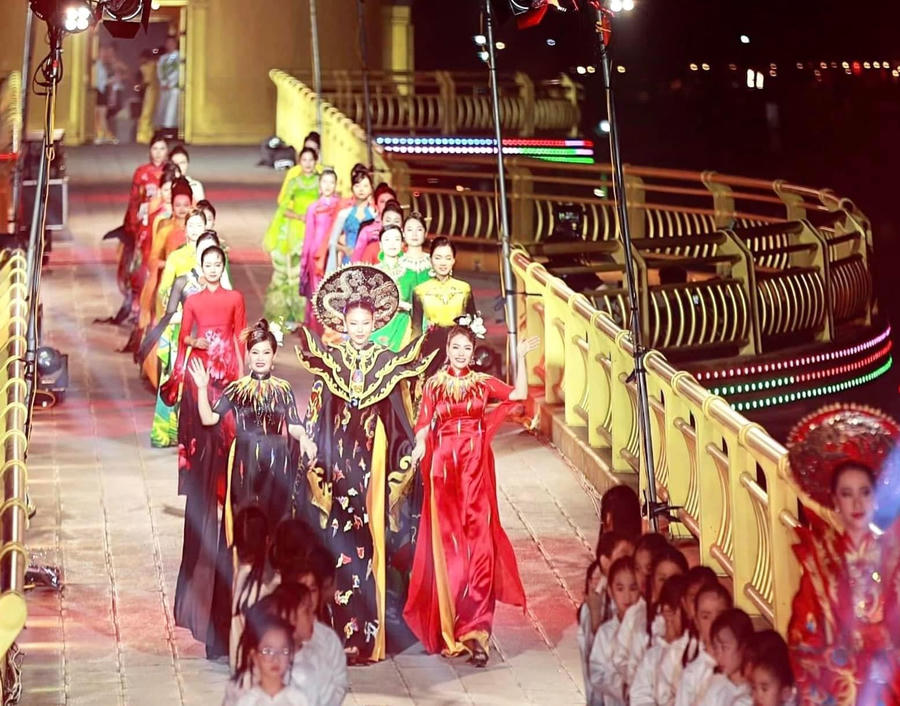Trong không gian rộng lớn của miền đất tổ Phú Thọ, hơn 50 tác phẩm áo dài lần lượt xuất hiện trên nền nhạc mang âm hưởng dân gian đương đại, đưa người xem như lạc vào thế giới của những câu chuyện truyền thuyết, từ thuở “Con Rồng cháu Tiên” đến “18 vị vua Hùng dựng nước và giữ nước”. BST không chỉ thu hút sự chú ý của quan khách cùng giới mộ điệu thời trang, mà còn chạm đến trái tim của hàng triệu người dân Việt Nam.