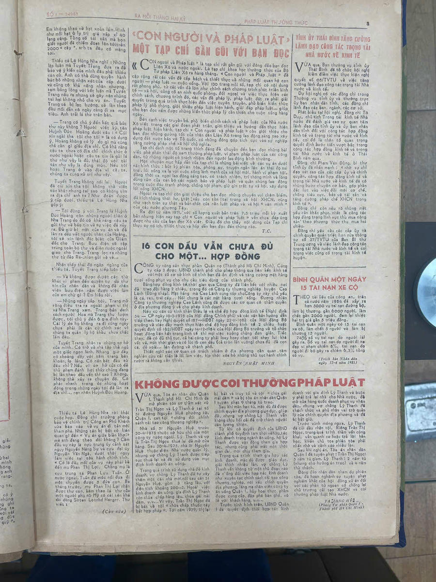 Một số bài viết khác phản ánh các hoạt động liên quan đến triển khai công tác tư pháp tại các địa phương và ngành, như bài “Chiến dịch đẩy mạnh công tác tư pháp đợt một thành công tốt đẹp”. Bên cạnh các bài viết về pháp luật hình sự và công tác lập pháp, tờ báo còn dành dung lượng đáng kể cho các mục phổ biến kiến thức pháp luật mang tính thực tiễn cao. Bài “Mỗi người chúng ta cần tìm hiểu Bộ luật Hình sự và chấp hành cho đúng” cung cấp kiến thức cơ bản về các quy định của Bộ luật Hình sự, đồng thời khuyến khích việc tìm hiểu và tuân thủ pháp luật trong nhân dân.