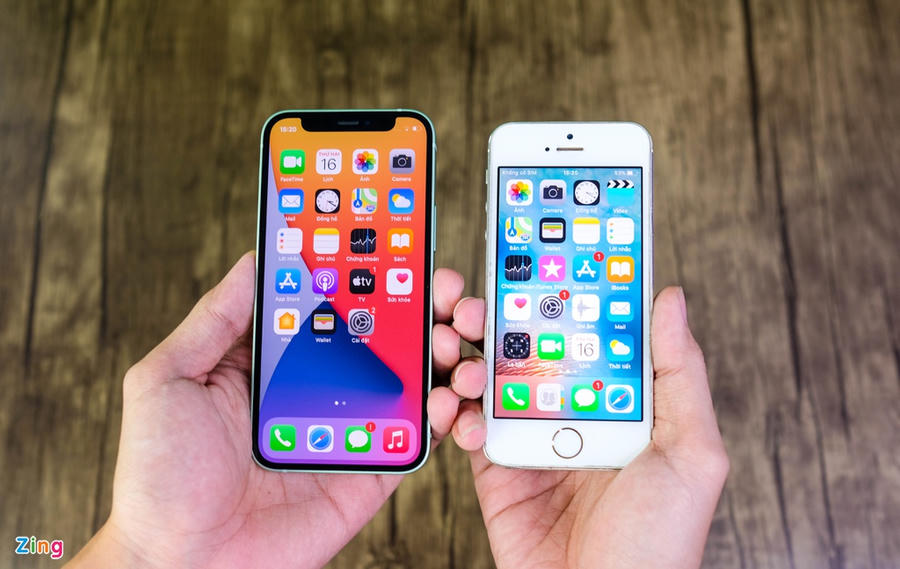 iPhone 12 mini với iPhone 5S đọ dáng