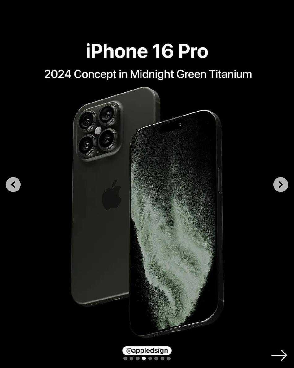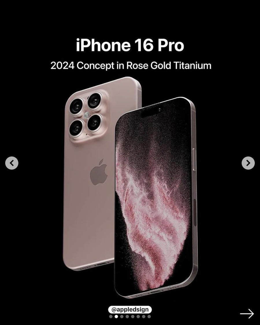 Bên cạnh màn hình kiểu mới, camera cải tiến, Apple được cho là sẽ tích hợp thêm phím bấm, trang bị modem di động hỗ trợ kết nối 5.5G, Wi-Fi 7 và camera góc siêu rộng tốt hơn cho bộ đôi iPhone 16 Pro. Máy cũng sẽ nâng cấp mạnh về màn hình và cấu hình. Trong bản dựng được @appledsign phác hoạ, iPhone 16 Pro còn có 4 tuỳ chọn màu sắc đẹp mắt gồm hồng, xanh, titan tự nhiên và đen không gian