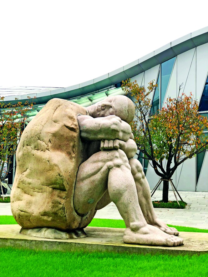 Trong khuôn viên tổng hành dinh của Alibaba dựng nhiều tượng lớn và tôi ấn tượng hơn cả với bức người đàn ông ngồi bó gối. Tay chân cuồn cuộn gân cơ như thò ra từ mai rùa nặng trĩu. Vì “chổng bàn tọa vào nghệ thuật điêu khắc”, tôi hỏi một nhân viên Alibaba, anh cười rằng, ai hiểu thế nào cũng được, với anh, là người ai cũng phải mang gánh nặng trên lưng, sức ép thường trực, đêm đến tự hỏi hôm nay đã làm gì, mai sẽ làm sao cho nhẹ nhàng hơn. “Tôi không thích văn hóa “996” (làm việc từ 9h sáng tới 9h tối, 6 ngày trong tuần). Tôi không thích trẻ đổi sức khỏe lấy tiền rồi già ngược lại”, anh lại cười, rất tự tin.