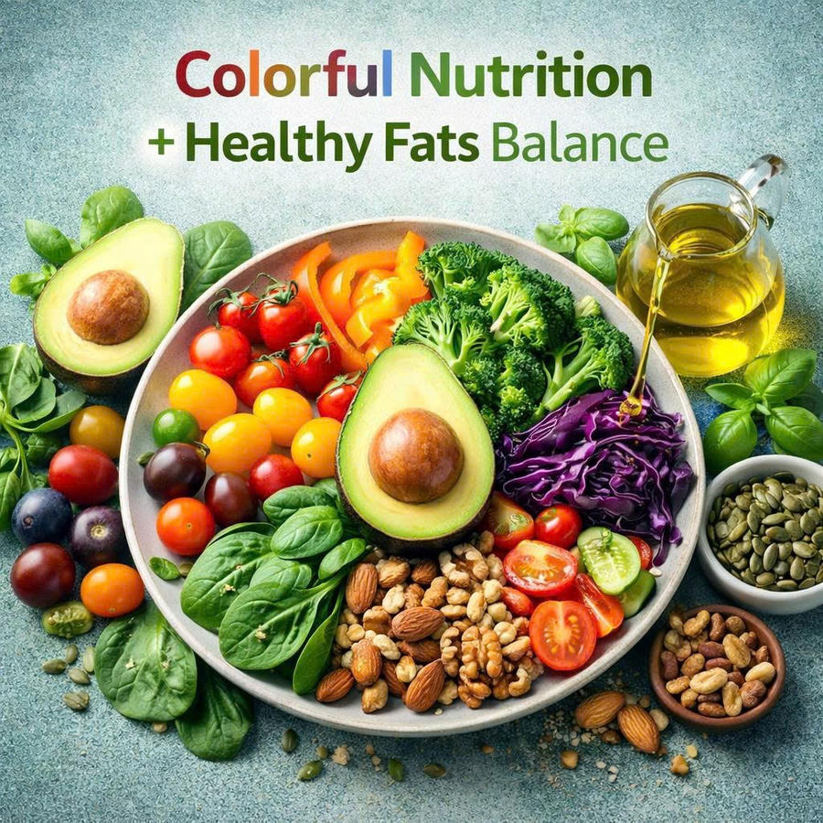 Rau củ nhiều màu sắc với một chút chất béo tốt lành mạnh