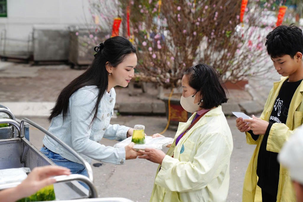Trước đó, ngày 19/1, chị Thủy cũng đã trao tặng 200 suất cơm cho bệnh nhân tại Bệnh viện Đa khoa Hà Đông.