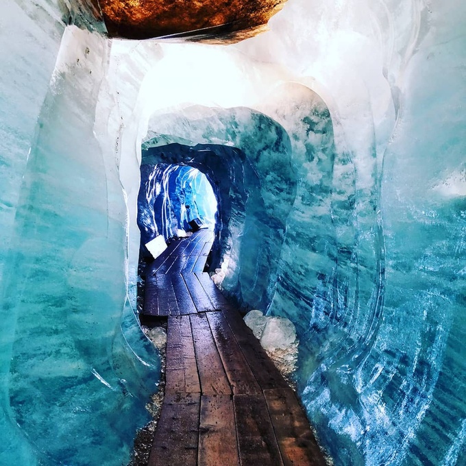 Đường hầm sông băng Rhone xuất hiện từ những năm 1894, được tạo nên từ những phần tinh khiết của sông băng, nơi băng "sạch" nhất và không hề lẫn tạp chất. Ánh sáng mặt trời có thể xuyên qua lớp băng trong suốt, mang đến cho đường hầm một thứ ánh sáng xanh thanh bình.