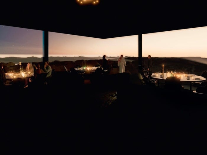 Dự tính đón khách năm 2024, Sharaan gồm 40 phòng suite, 3 villa, nhà hàng, bể bơi và nhiều tiện ích hiện đại nhưng đều nằm trong một núi đá.