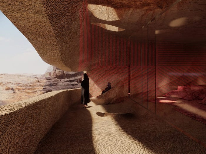 Kiến trúc sư đạt nhiều giải quốc tế Jean Nouvel vừa tiết lộ thiết kế cho một khách sạn "khắc" trong lòng núi đá cổ đại khổng lồ ở Saudi Arabi. Thiết kế này được lấy ý tưởng từ chính những công trình ở thành phố cổ Petra ở Jordan, nơi được xem là một trong 7 kỳ quan thế giới.