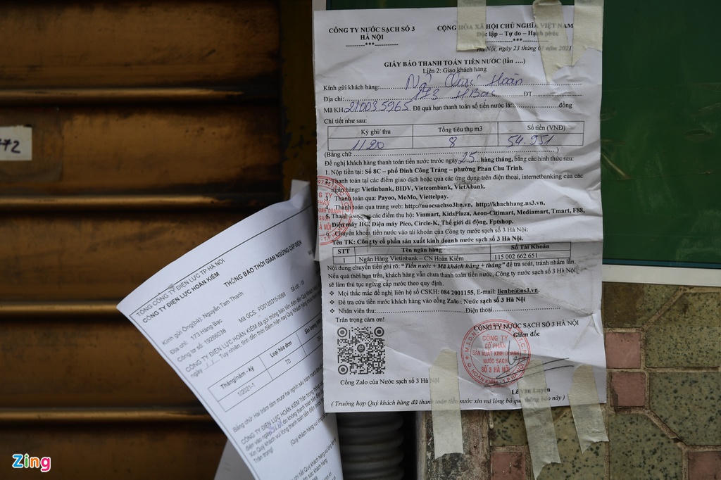 Giấy báo thanh toán tiền điện, nước dán ở nhiều cửa hàng. Tuy nhiên, hầu hết họ đã đóng cửa hoặc chuyển đi nơi khác.