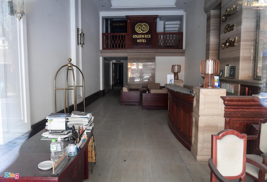 Trên phố Hàng Trống, một khách sạn lớn đã đóng cửa từ tháng 2/2020 và chưa biết khi nào mới có thể mở cửa trở lại.