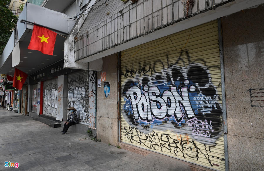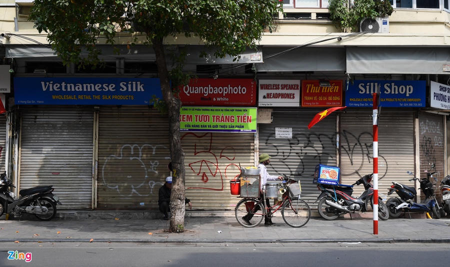 Do ảnh hưởng của dịch Covid-19, lượng khách du lịch giảm mạnh, người dân hạn chế ăn uống bên ngoài khiến nhiều cửa hàng tại trung tâm Hà Nội rơi vào cảnh ế ẩm. Trong ảnh là một góc phố Hàng Gai, nơi từng có nhiều cửa hàng bán đồ cho khách du lịch.
