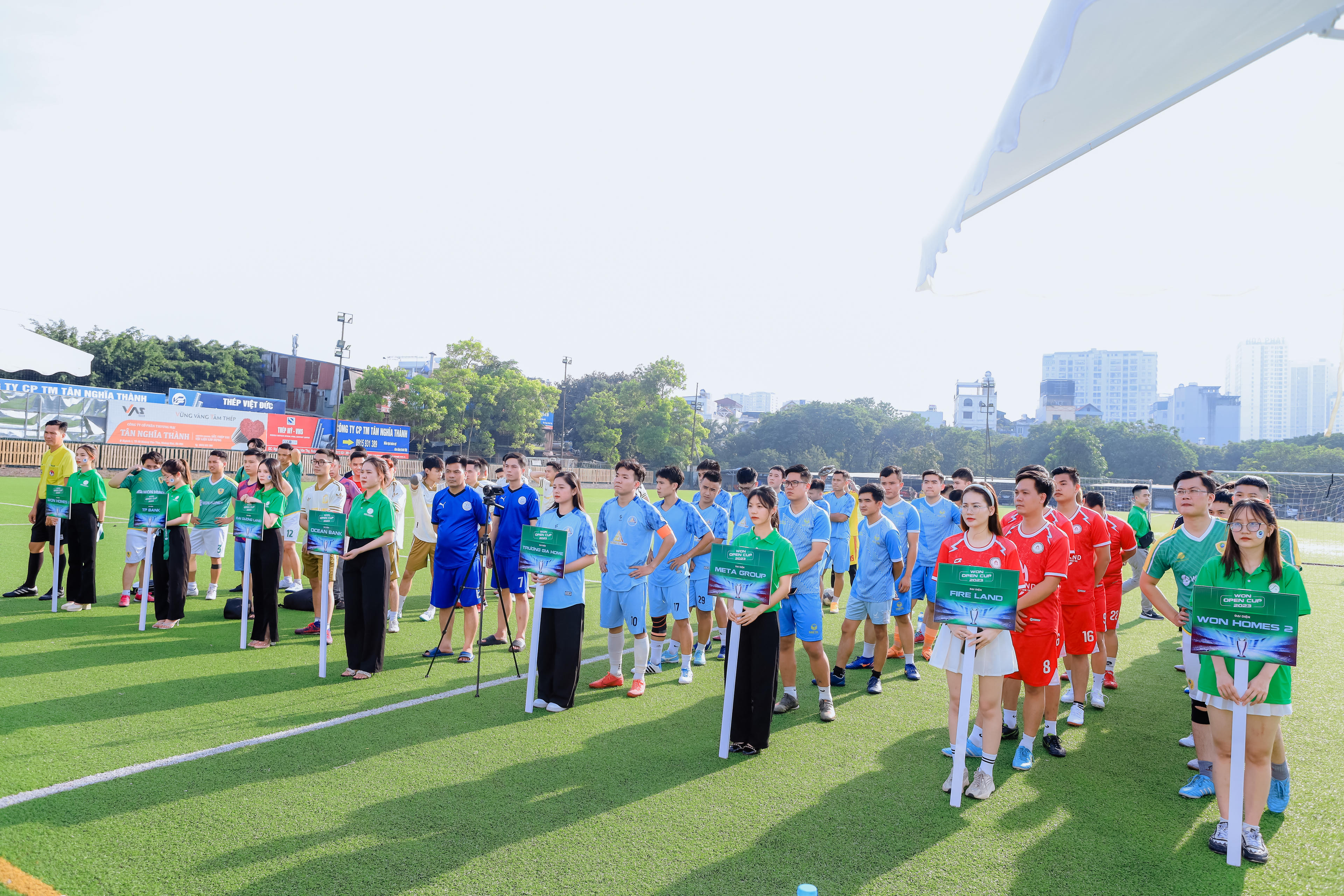 Ngày 3/7/2023, giải bóng đá “Won Open Cup 2023” đã chính thức khai mạc tại sân bóng đá hồ Đền Lừ thuộc khu vực quận Hoàng Mai, Hà Nội thu hút sự tham gia đông đảo của các cổ động viên. Đây là một giải đấu đặc biệt, quy tụ 8 đội bóng hàng đầu từ các tài chính ngân hàng và doanh nghiệp bất động sản lớn.