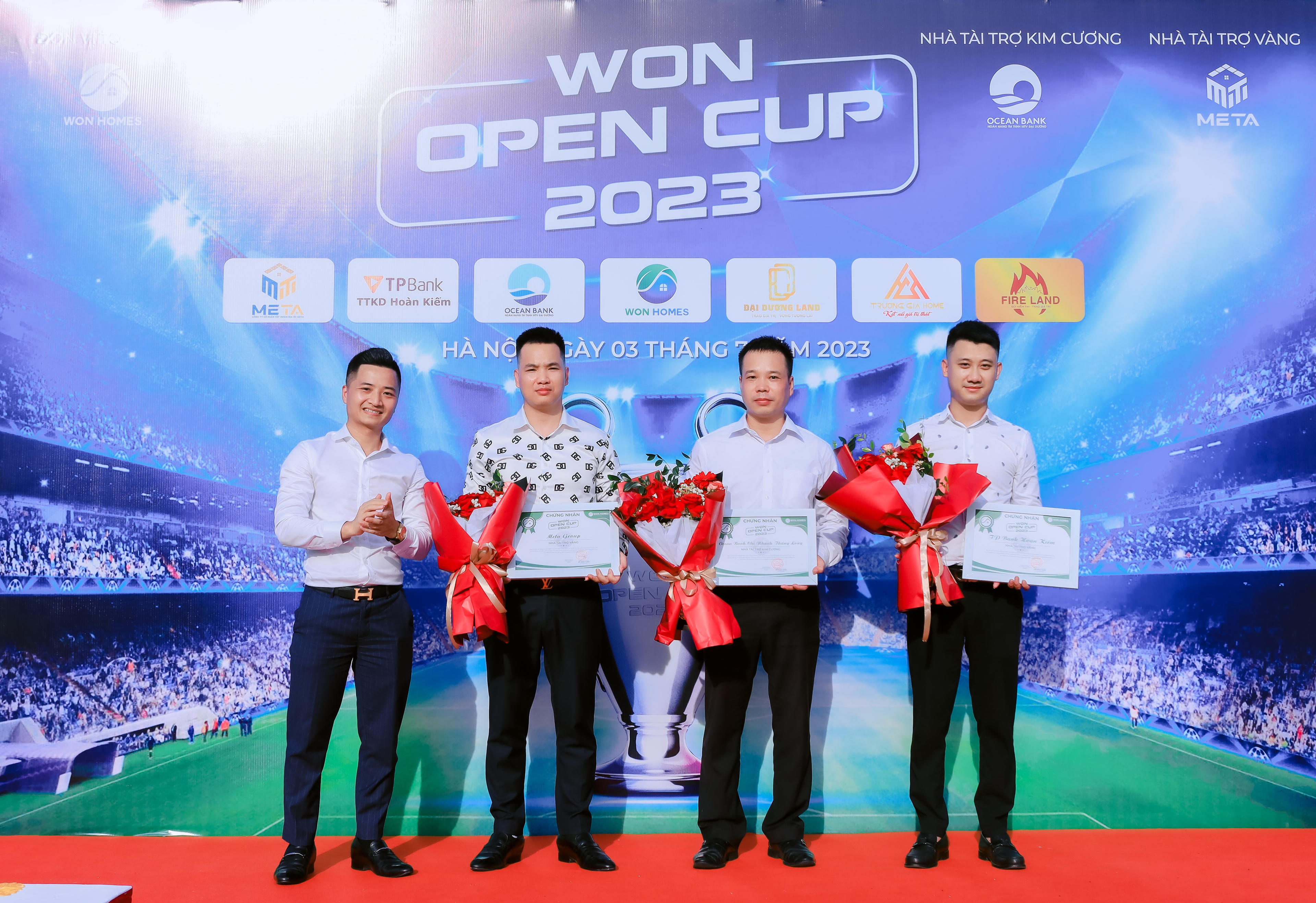 Giải bóng đá Won Open Cup 2023 mở rộng được vinh dự đồng hành với 3 nhà tài trợ chính là: Ngân hàng Thương mại TNHH MTV Đại Dương (Ocean Bank); Ngân hàng Thương mại Cổ phần Tiên Phong (TP Bank) và Công ty Cổ phần Bất động sản Meta Land. Đại diện ban tổ chức cũng cho biết, sự đồng hành và hỗ trợ của các nhà tài trợ là nguồn động lực to lớn cho sự kiện bóng đá lần này.