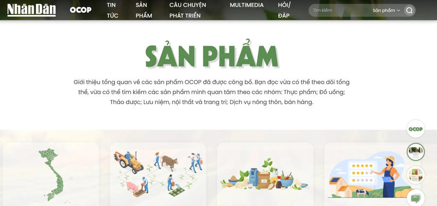Cũng theo đồng chí, chuyên trang OCOP của Báo Nhân Dân được thiết kế theo hướng thân thiện, hiện đại, dễ sử dụng, tiện tra cứu. Chuyên trang tập hợp thông tin dữ liệu đa dạng, chính thống về Chương trình OCOP và các sản phẩm OCOP của các địa phương.