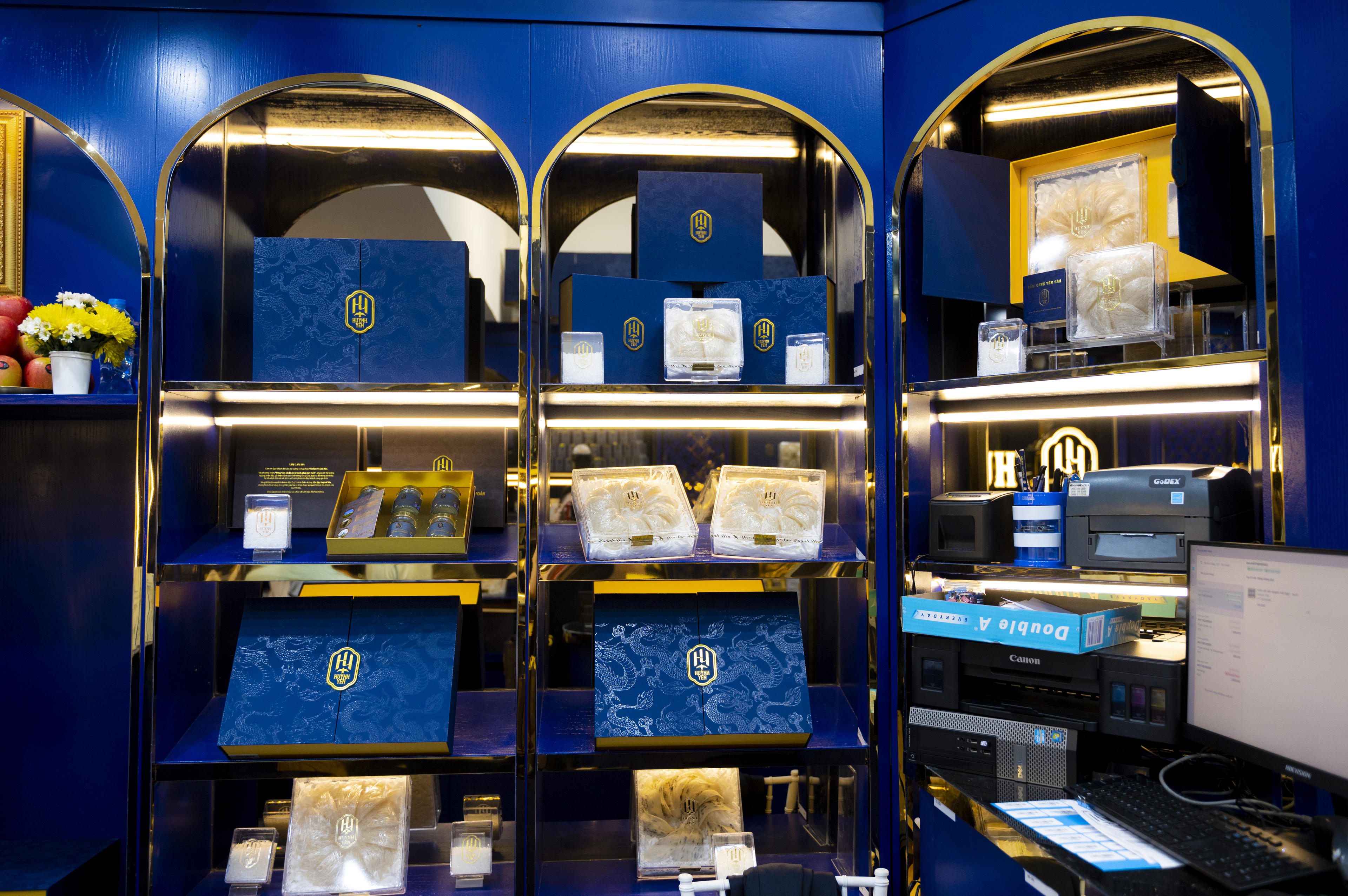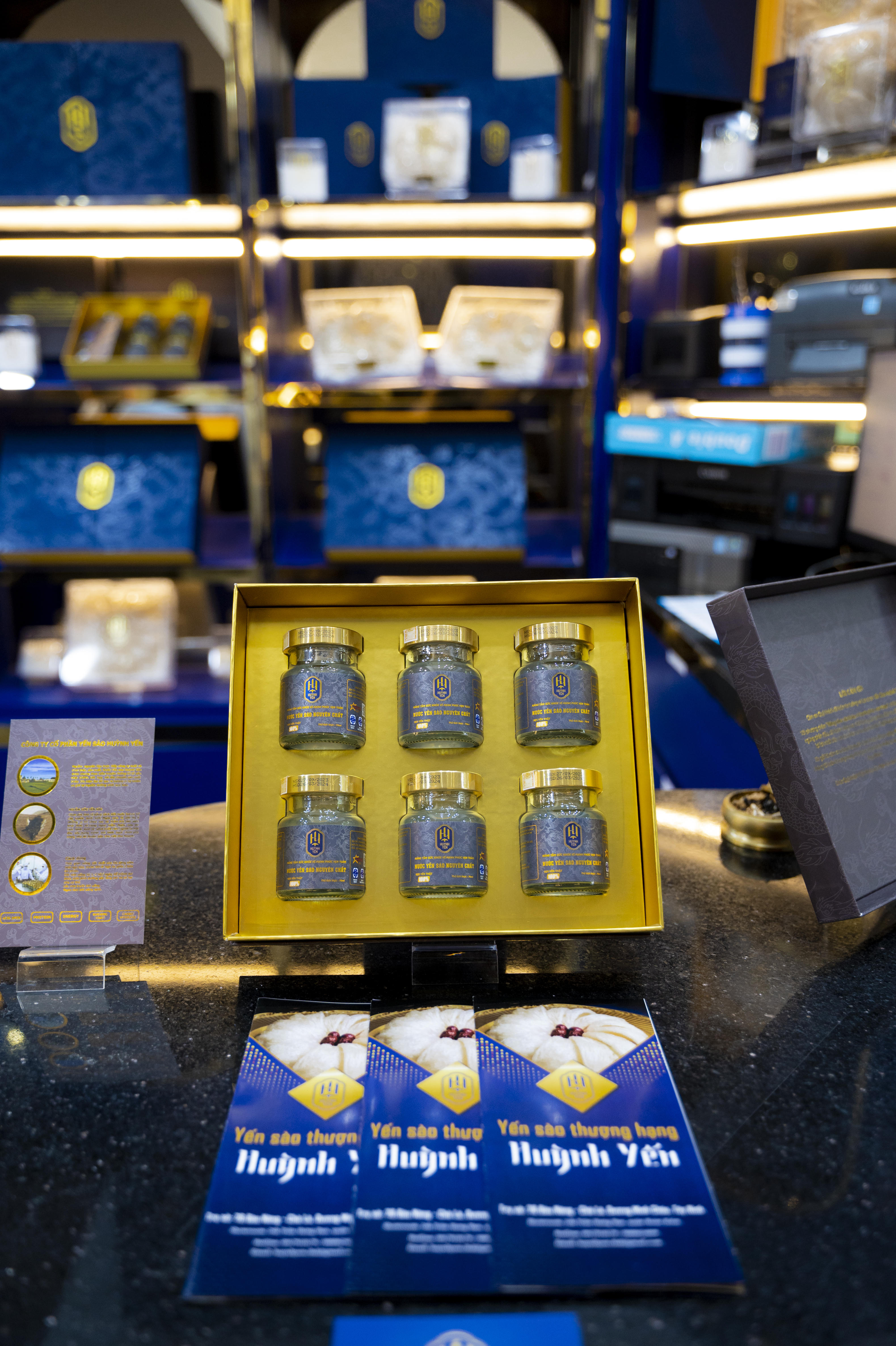 Một trong những điểm đặc biệt là Showroom mới có thiết kế hiện đại, sang trọng và cách bài trí hợp lý. Bên cạnh đó, các sản phẩm trưng bày tại showroom đều là yến sào thượng hạng với bao bì đẹp mắt, phù hợp làm món quà tặng cao cấp gửi đến người thân và đối tác.