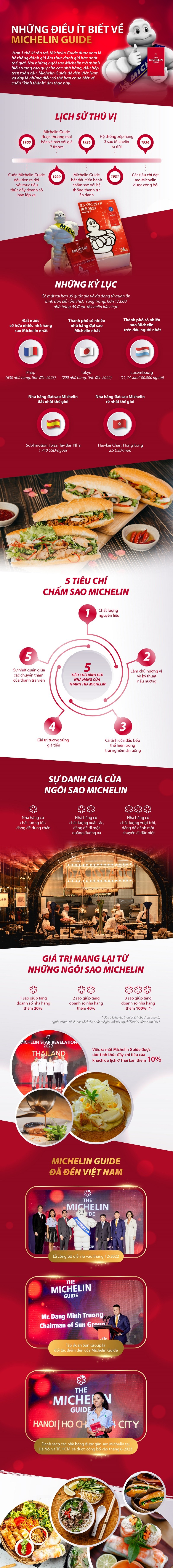 Trong giới ẩm thực, sao Michelin đại diện cho đỉnh cao chất lượng và Michelin Guide được ví như "kinh thánh". Cùng tìm hiểu lịch sử và những điều đặc biệt về danh hiệu cao quý, chốn ngưỡng vọng của mọi đầu bếp, nhà hàng trong làng ẩm thực thế giới, qua những con số và sự thực vô cùng thú vị mà ít người biết được.
