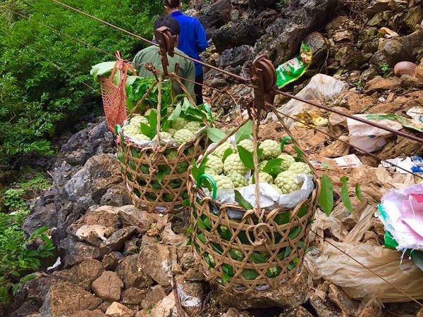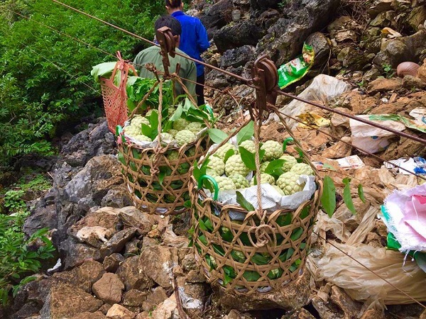 Vì cây na chủ yếu được trồng trên vách núi đá cao vút, nên để thu hoạch những quả na từ trên đỉnh núi xuống, người dân nơi đây đã chế tạo ra những chiếc ròng rọc chạy từ trên cao xuống tận chân núi. Cứ thế na được vận chuyển nhanh chóng, an toàn xuống tận chân núi cách đỉnh hàng trăm mét thẳng đứng. Chính vì na được hái cách đặc biệt như thế, nên nhiều du khách ví von rằng lên Chi Lăng được ăn "na đu dây".