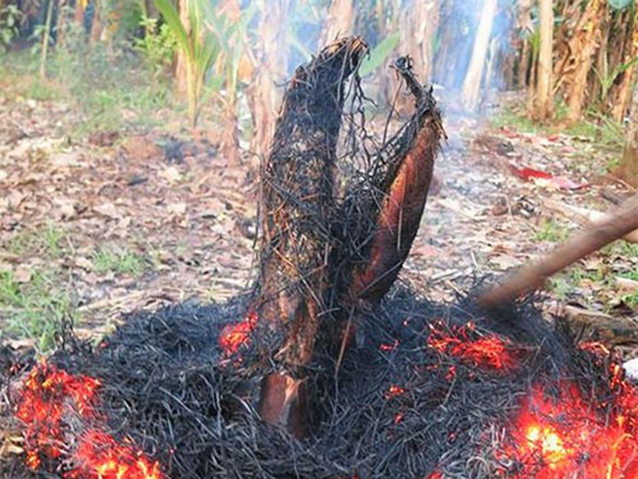 Sau đó cắm những thanh tre đã xiên cá xuống đất và phủ rơm khô lên, người nướng cá phải ước lượng rơm vừa đủ để khi rơm vừa tàn thì cá cũng vừa chín. Rơm dư thì cá khét hoặc quá chín, mất ngọt còn khi rơm thiếu thì cá lại nhão, tanh.