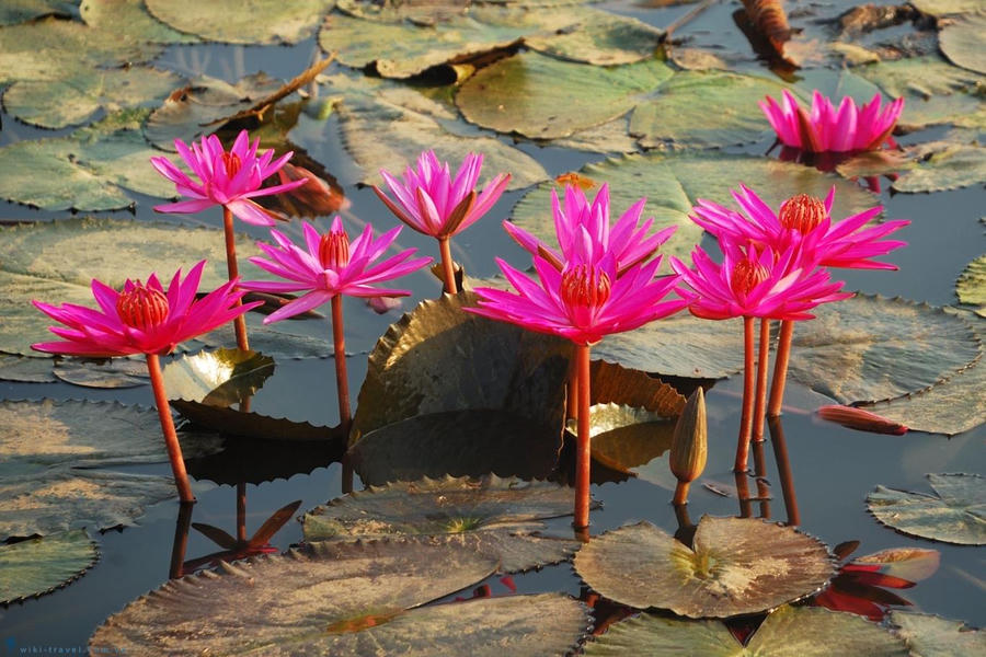 Đến Đồng Tháp vào mùa nước nổi, chúng ta sẽ thấy dọc theo hai bờ tuyến kênh dài hàng mấy chục cây số, bông điên điển nở rộ thành từng chùm, ửng vàng chen lẫn sắc xanh của lá.
